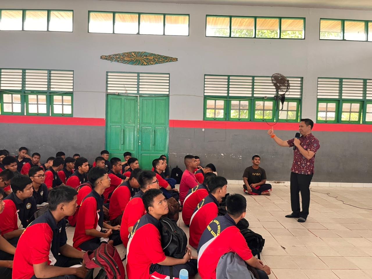 Foto: Jaemi Wahyudi selaku ketua tim menyampaikan materi di hadapan siswa-siswa SMK Karsa Mulya (12/12/2025) dok Jaemi